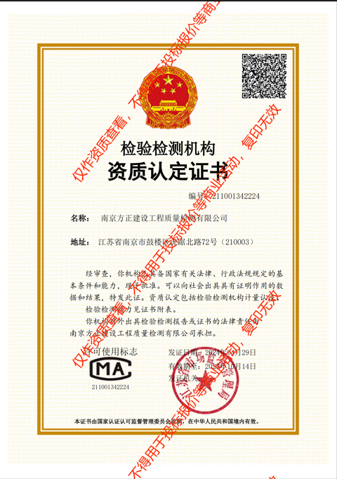 南京方正建設工程質量檢測有限公司是1989年省建設廳批準成立的具有獨立法人資格的專業工程質量鑒定及檢測機構,具有中國合格評定國家認可委員會實驗室認可CNAS資質、省建設廳核準的見證取樣類檢測、專項類檢測及備案類檢測資質,省質量技術監督局資質認定CMA資質,省地理測繪信息局測繪資質,被省建設廳評為2010年度、2011年度、2012年度A級信用等級單位,是入選《全省中小學校舍安全工程抗震鑒定機構名錄》的鑒定機構, 是入選江蘇省人民法院委托鑒定機構電子信息平臺的鑒定機構...